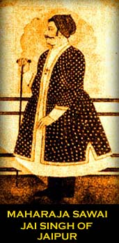 "Maharaja Sawai Jai Singh II of Jaipur, was born in AD 1686 and succeeded to the Amber territory at the age of thirteen in AD 1699, a few years before the death of Aurangzeb. He had difficulties in establishing himself, but in 1708 obtained complete possession of the province. In 1719 he was appointed by Muhammad Shah governor of the province of Agra and soon after to Malawi. In 1734 he was again governor of Malwa and in that year, apparently with the cognizance of the Emperor, he resigned the province to the Peshwa. He died in 1743, two hundred years after Copernicus, and "his wives, concubines, and science expired with him on his funeral pyre." Jai Singh distinguished himself more as a statesman than a soldier and has been termed the Machiavelli of his day. He was the founder of a new capital, named after him- Jainagar or Jaipur, which in his time became a center of learning; he erected caravansaries in many of the provinces and he built astronomical observatories at five of the principal cities of Hindustan. He conceived and carried out a scheme of scientific research that is still a notable example; and his influence is still a living one. The observatories he erected are, in the words of his historian, "monuments that irradiate a dark period of Indian History." At an early age Jai Singh showed a predilection for astronomical work and,
